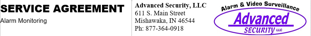 This Service Agreement (the “Agreement”) is made as of the Agreement Date between the customer procuring the services (“Customer”) and Advanced Security, LLC (“Provider”), an Indiana limited liability company.